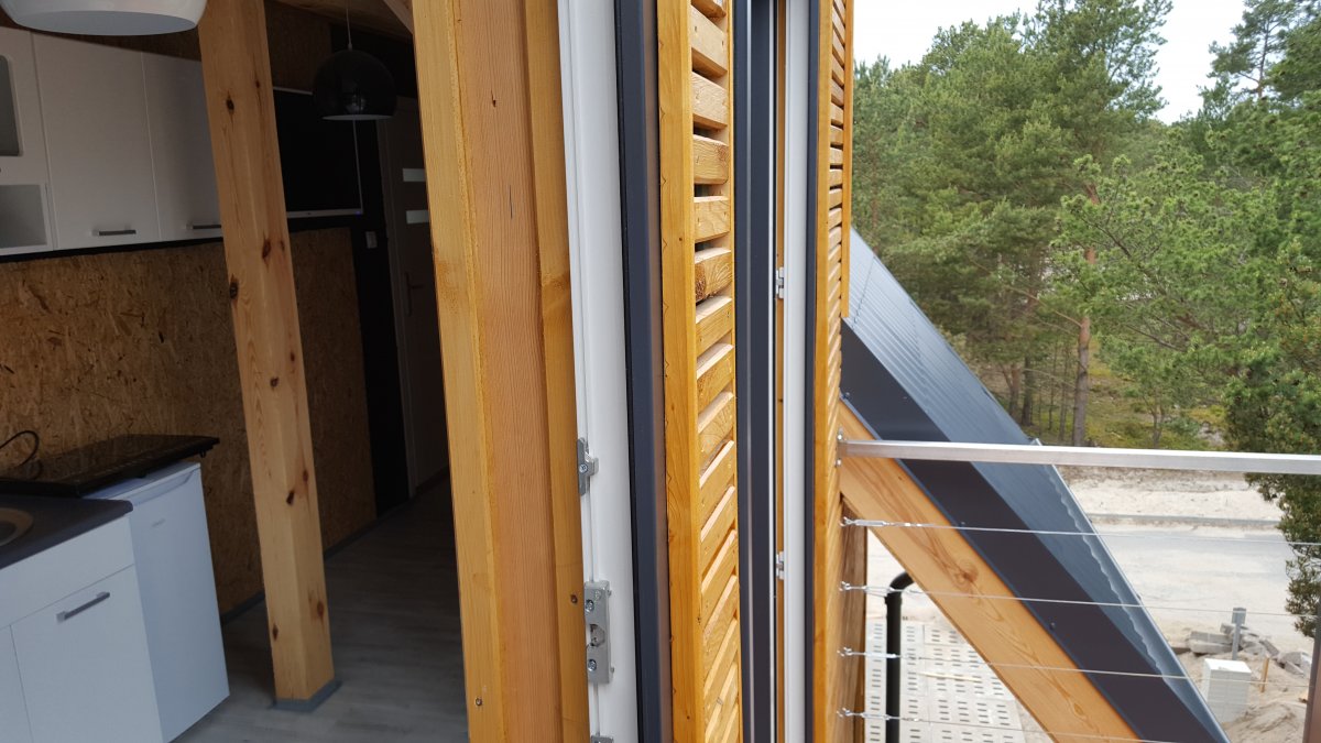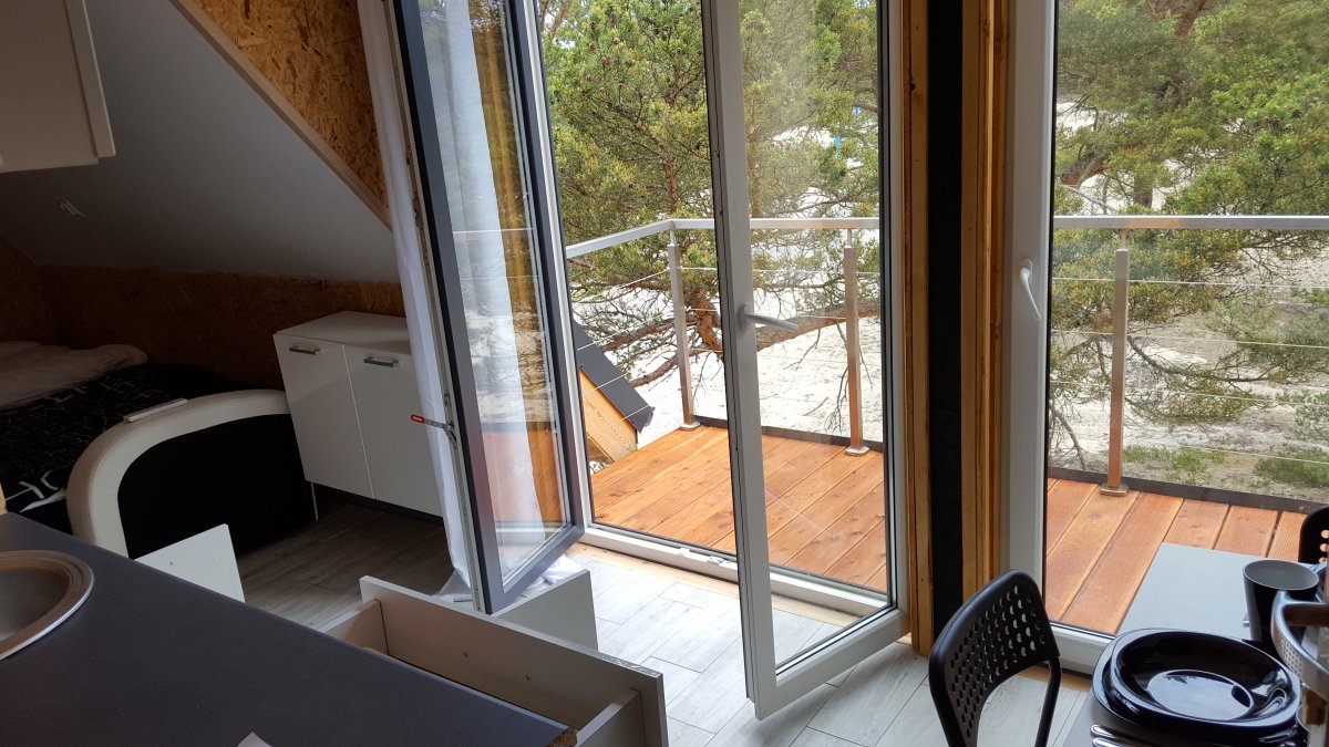 Balkon. Rozkładana sofa. Prywatna łazienka. Widok na sosny i w oddali wydamy. Dobra dla palących z uwagi na balkon. Od strony północnej. [tagi: kwatery hel, hotele na półwyspie helskim]